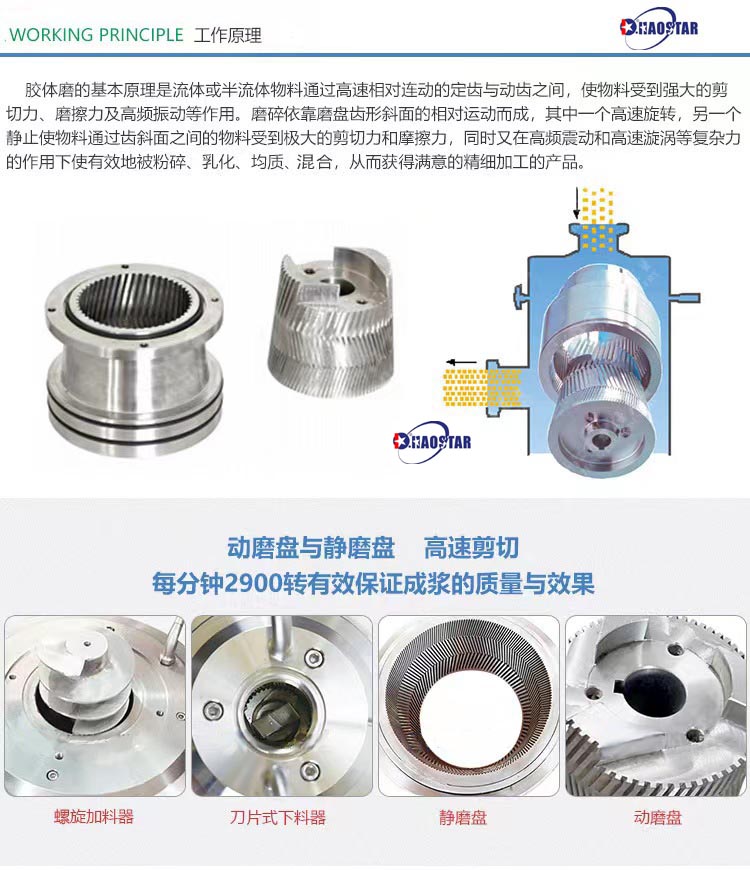 昊星機械科技CN.HAOSTAR®技術部門人員充分利用科學技術各方面的創新優勢, 獲得浙江省科學技術廳科技成果、納米級研磨泵、智能型低溫膠體磨、新型智能膠體磨、石墨烯納米膠體磨、管線式膠體磨、鈦白炭黑多功能研磨機、膠體均化機、高速打漿泵、管道磨、納米級研磨泵、高效混合機、乳化器、研磨型粉碎泵、分散研磨機、白酒糟粉碎機等設備24小時連續運行,進出口管道在線,分散,混合,均化,研磨自動一體化,效率高等優點。代替進口設備國產化改造的新產品,研磨泵可代替進口研磨機或砂磨機等設備使用,比如用于石墨烯納米材料、清潔柴油、煤焦油乳化、生物工程ARA+DHA(發酵法)單體工廠粉碎魚蝦漿、改性白炭黑、消泡劑.改性白炭黑的二氧化硅濾餅高速混合,解聚,分散,均化,打漿和輸送的工藝處理上有了更大發揮,效益顯著,與類似產品比較在其生產效率的數倍,可大幅度的降低生產成本費用,而且顆粒均勻、清洗換色方便、無研磨雜質等性能。